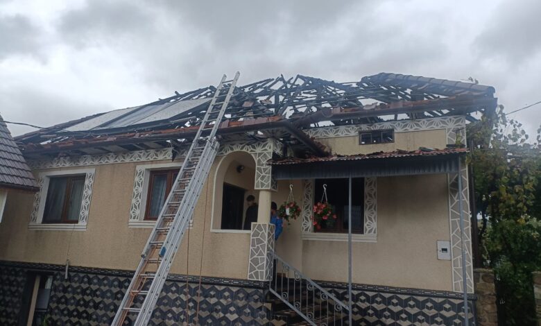 Casă în flăcări în Turț! Incendiu puternic la nivelul acoperișului! Intervin pompierii!