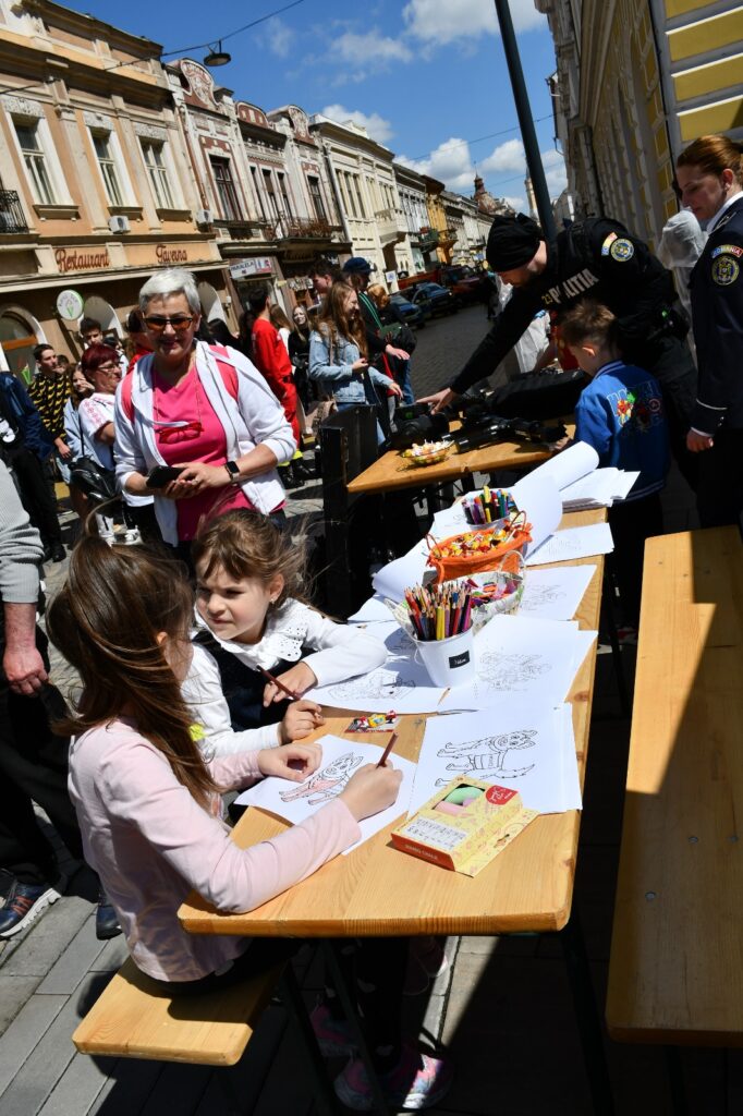 În acest an, polițiștii sătmăreni împreună cu celelalte structuri ale Ministerului Afacerilor Interne, au sărbătorit în avans Ziua Internațională a Copilului, în centrul municipiul Satu Mare, pe strada Ștefan cel Mare, unde cei mici au avut ocazia să admire tehnica din dotarea instituției noastre, să ia parte la jocurile propuse de colegii din cadrul Compartimentului Analiza și Prevenirea Criminalității, Biroului pentru Protecția Animalelor și Biroului Siguranță Școlară și să se bucure, de prezența câinelui de serviciu cât și de semnalele acustice ale autospecialelor.