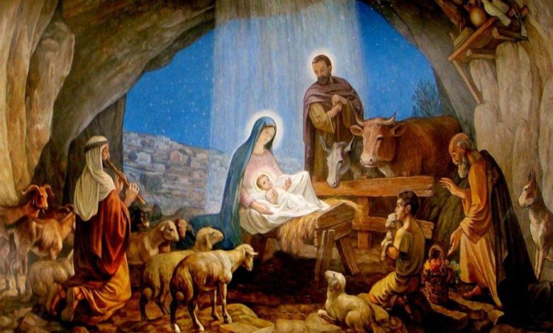 Potrivit Sfintei Scripturi, Sfânta Fecioară Maria, mergând cu Sfântul şi Dreptul Iosif, care era descendent din casa şi neamul regelui David, de la Nazaret la Betleem, cetatea lui David, spre a se înscrie, a născut pe Iisus într-un staul de animale de la marginea cetăţii.