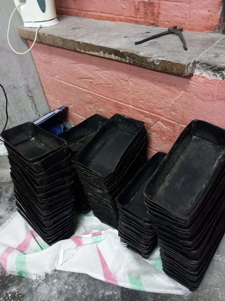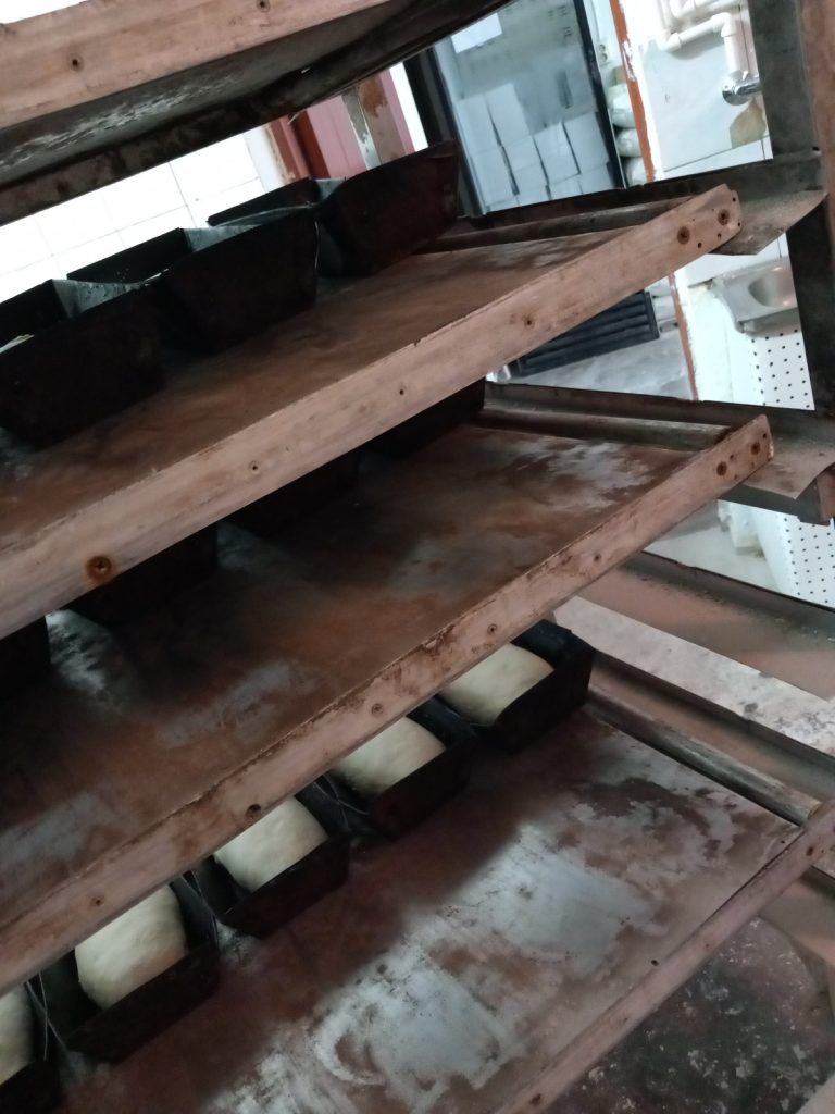 - tăvile folosite la coacerea pâinii și produselor de panificație și cele utilizate în procesul de fabricație sunt uzate, deformate, ruginite, cu resturi arse învechite;