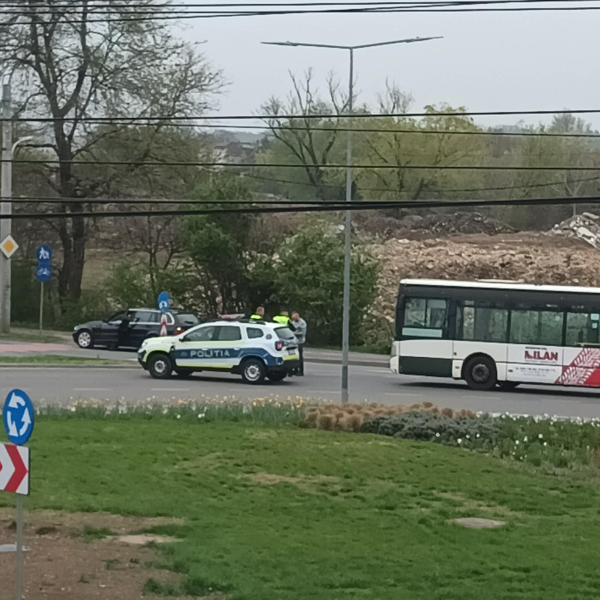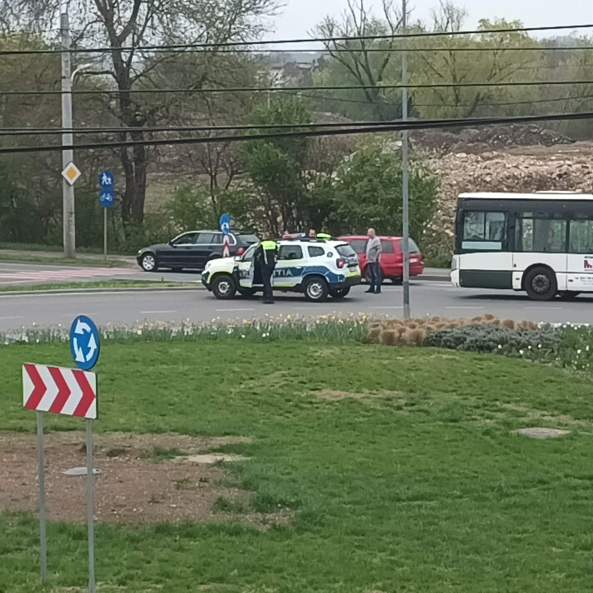 Accident într-un sens giratoriu din Satu Mare: șoferul unui autoturism nu a acordat prioritate unui autobuz!