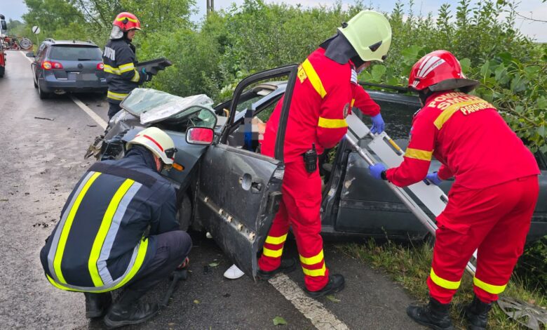 În urma impactului, o persoană de sex feminin, în vârstă de aproximativ 55 de ani a rămas blocată în autoturism. La fața locului s-au deplasat o autospecială de stingere și un echipaj de prim ajutor din cadrul Detașamentului Satu Mare, cu un total de 8 cadre militare.