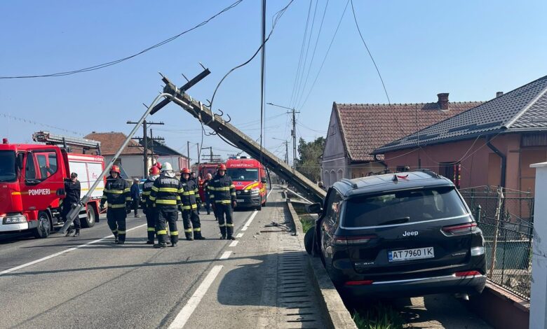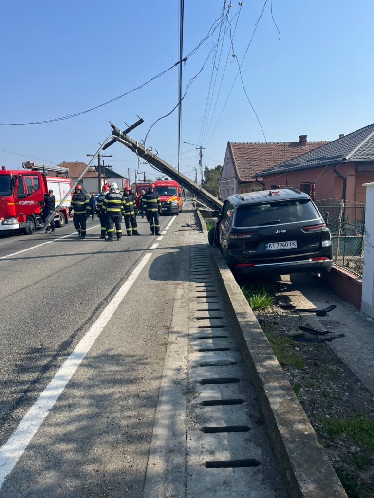 Accident rutier în județ: șofer scăpat cu viață, dar pericol de electrocutare pe șosea!