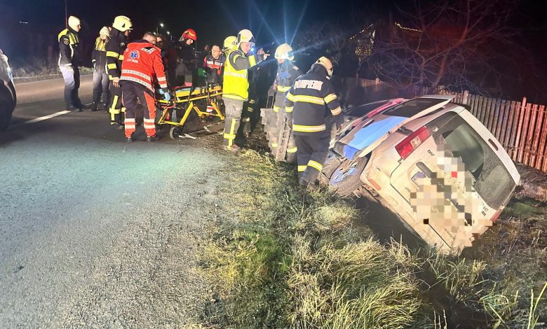 Accident rutier în Satu Mare! Pasager rămas între fiare după ce mașina a părăsit carosabilul!
