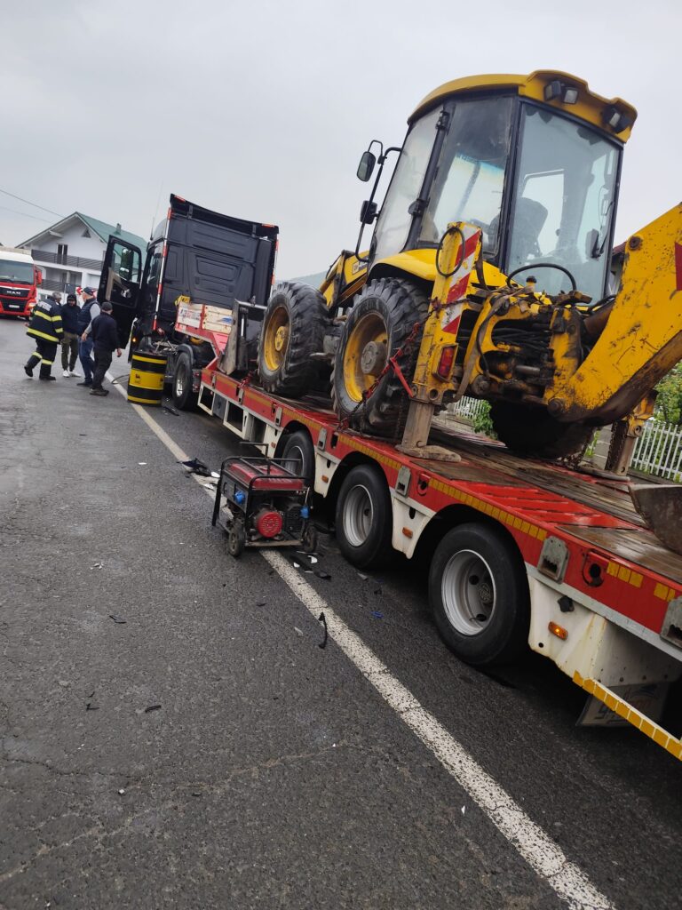 Accident rutier între un camion cu platformă și un autoturism, în județ!