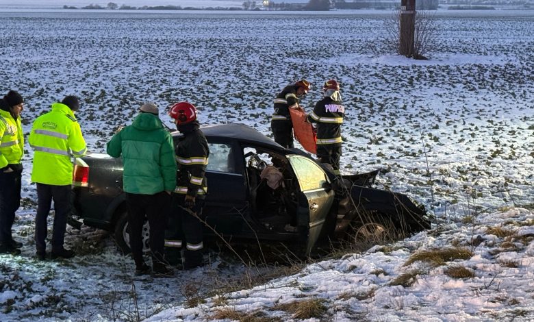 Echipajele de pompieri ajunse la fața locului au intervenit de urgență la descarcerarea șoferului autoturismului, o persoană de sex masculin cu vârsta de aproximativ 60 ani.