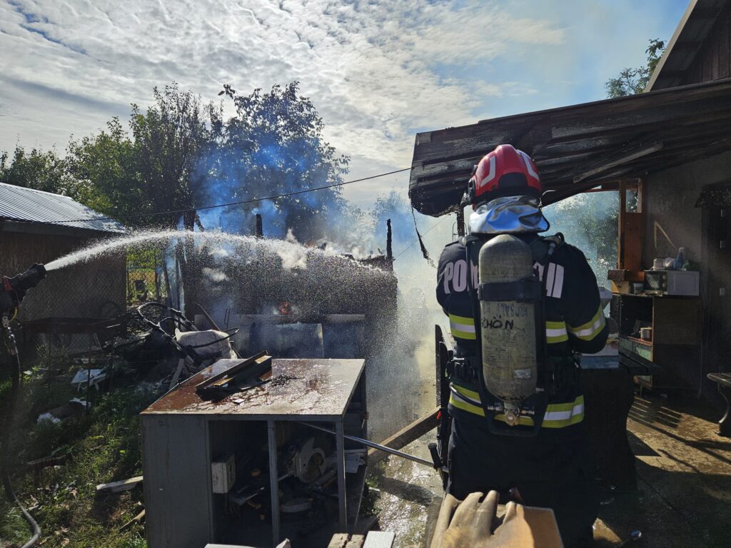 Anexă cu lemne, făcută scrum în Satu Mare. Intervenție promtă a pompierilor!