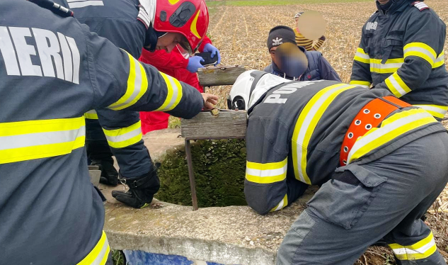 Bărbat salvat de la moarte de pompieri, după ce a căzut în fântână!