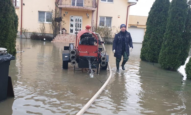 Pompierii luptă de ore bune cu degajarea apei din mai multe curți ale cartierului Sătmărel și localitatea Balta Blondă.
