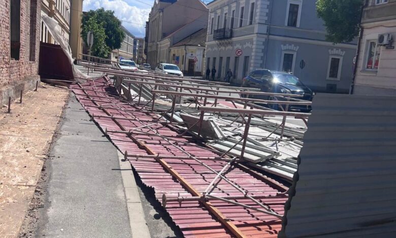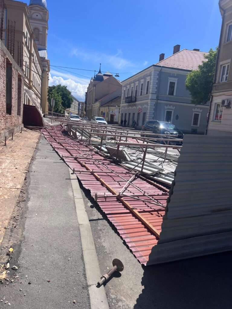 Echipajele Detașamentului de Pompieri Satu Mare au acționat astăzi, 18 mai, pe strada Ștefan cel Mare pentru înlăturarea unei schele metalice de construcții răsturnată pe carosabil.