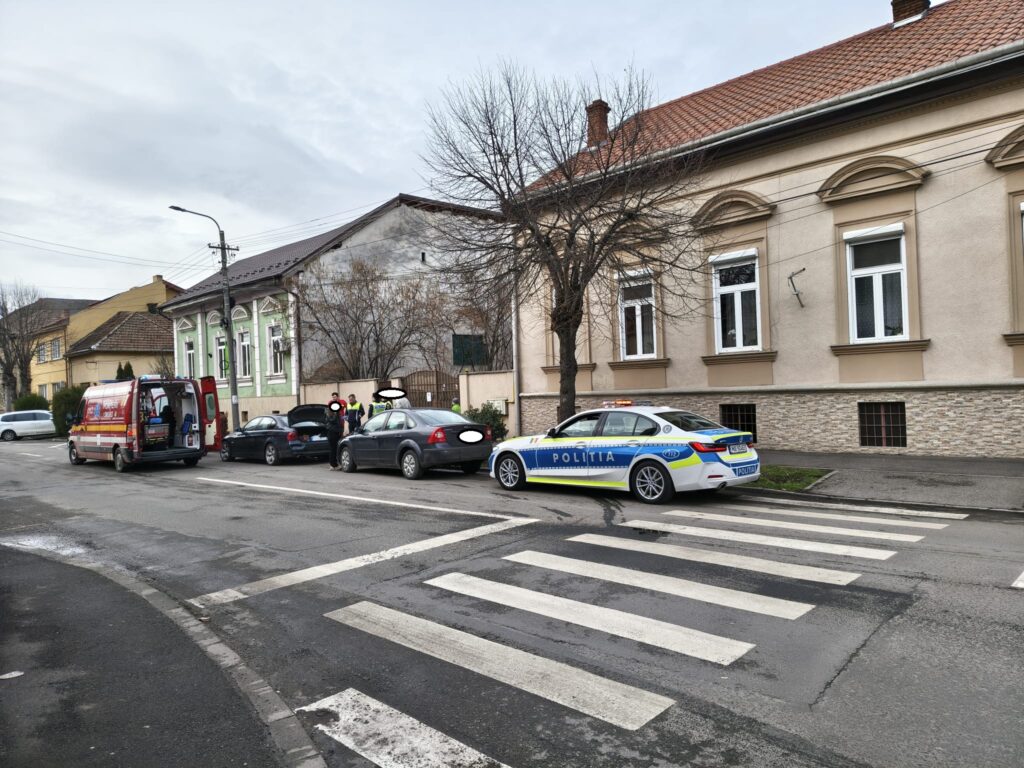 Un accident rutier a avut loc în cursul după amiezii de astăzi, 6 februarie, la intersecția străzilor Mileniului cu Cehlăului, din municipiul Satu Mare.
