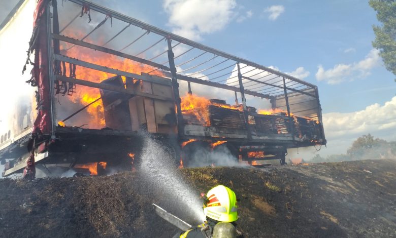Foto/video: Incendiu pe șosea! 12 tone de lemn pentru mobilă, făcute scrum!