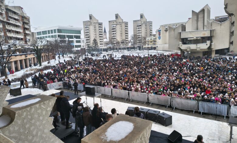 Foto/video: Mii de elevi au dat glas „Luceafărului” în Piața 25 Octombrie din Satu Mare, de Ziua Culturii Naționale