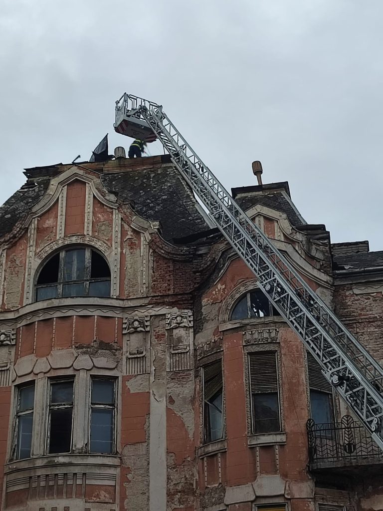 Vântul puternic a ridicat, în noaptea de joi spre vineri, 03.11.2023, o parte din învelitoarea din tablă a acoperişului unei clădiri de pe strada Ștefan cel Mare din Satu Mare. Operațiunea pompierilor militari de îndepărtare a acesteia, ca măsură de precauție pentru a evita un risc suplimentar, întrucât exista un pericol iminent ca bucăți din tablă să ajungă în stradă, a fost una cu un grad mare de periculozitate și a durat câteva ore.