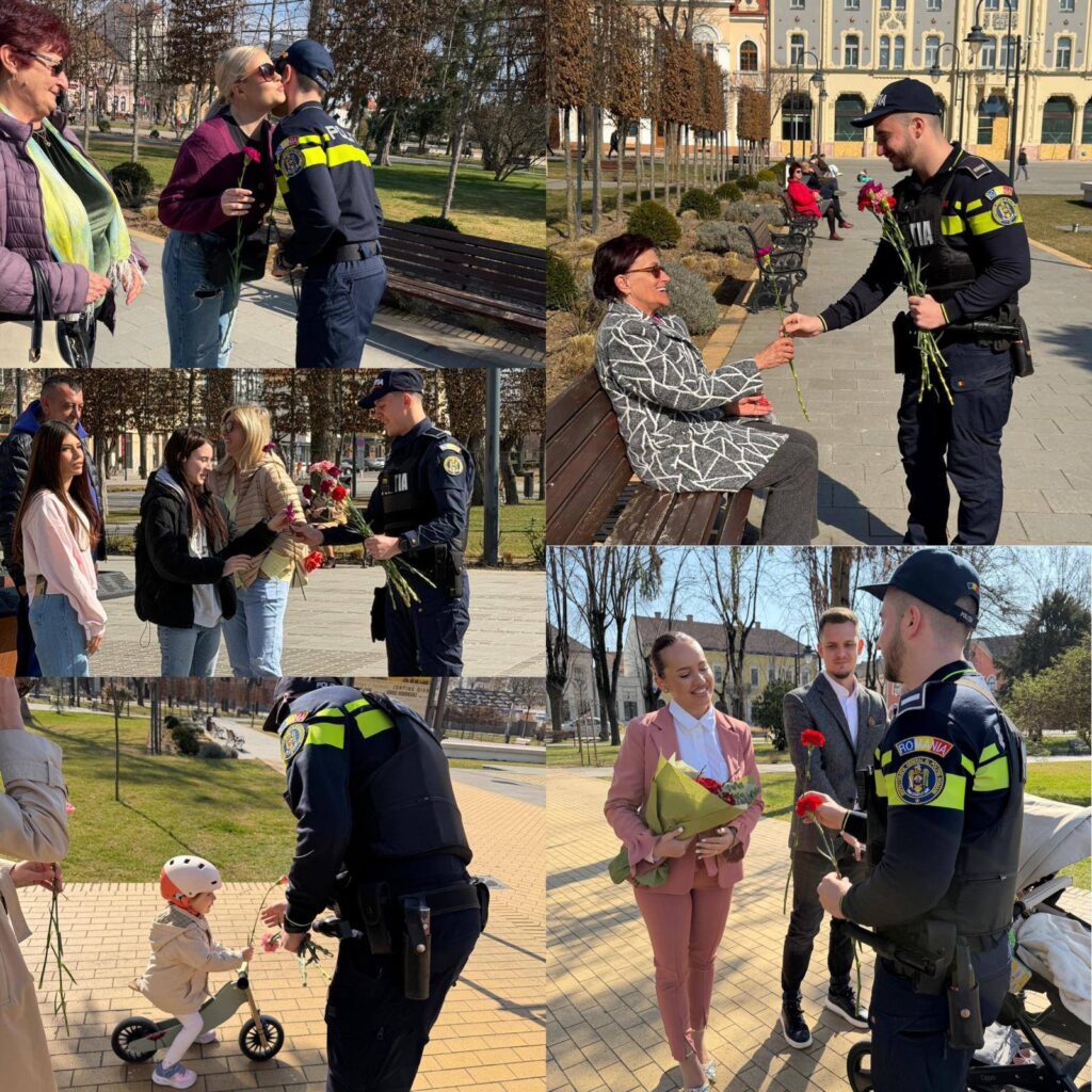 Cu ocazia Zilei Internaționale a Femeii, polițiștii din cadrul Inspectoratului de Poliție Județean Satu Mare au adus un zâmbet pe chipul doamnelor și domnișoarelor aflate duminică în trafic. În locul controalelor obișnuite, oamenii legii au oferit flori și urări de bine femeilor întâlnite pe străzile din municipiu, fie că erau la volan, fie pietoni.