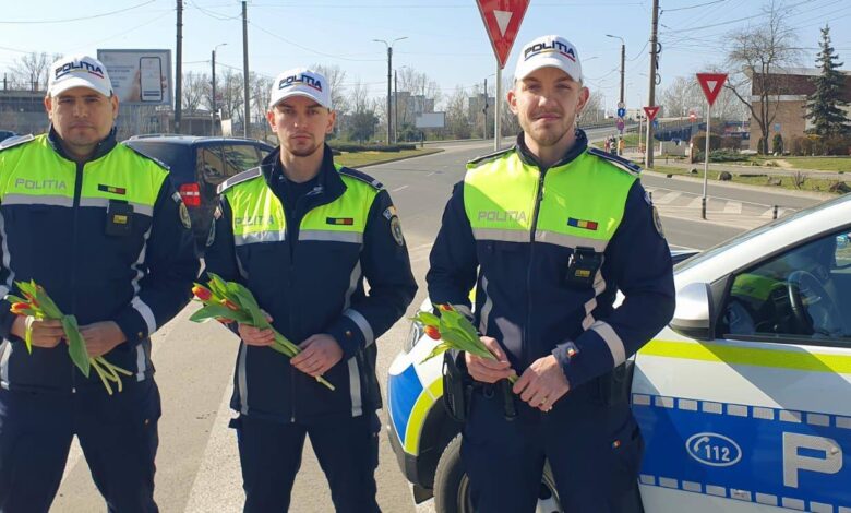 Gest frumos în trafic: polițiștii din Satu Mare au oferit flori doamnelor și domnișoarelor