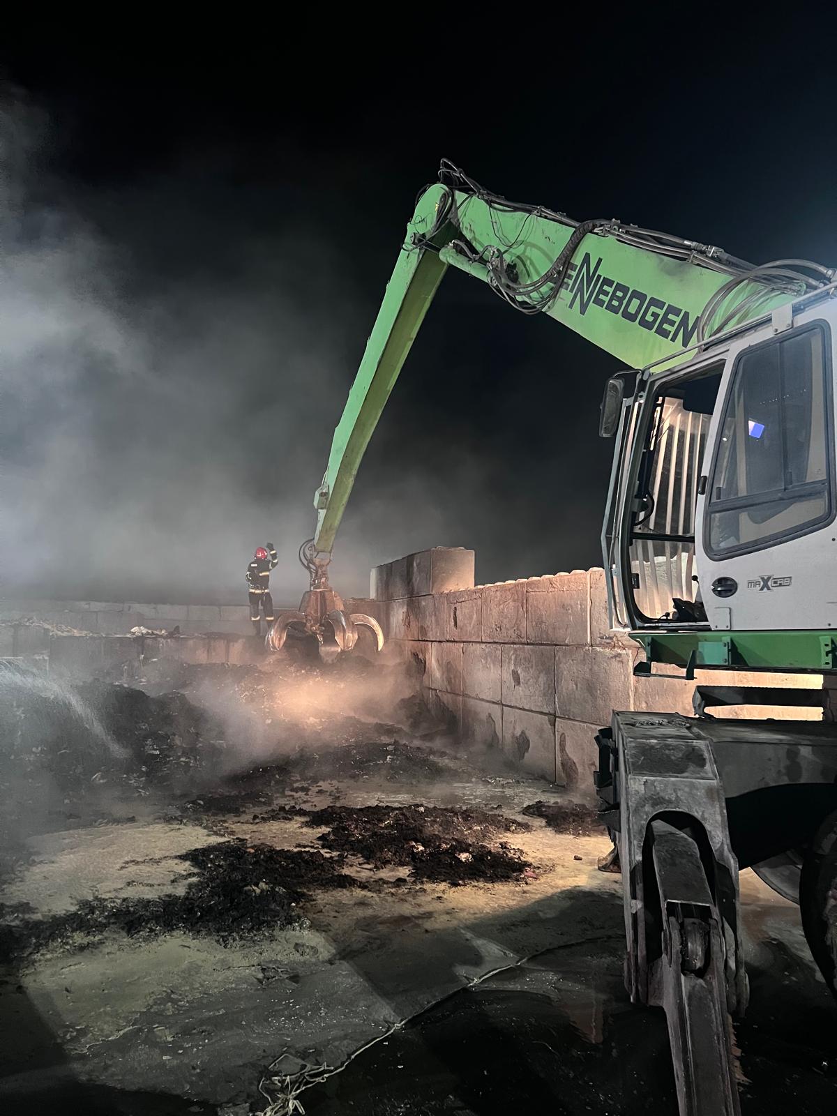 Flăcările s-au manifestat pe o suprafață de aproximativ 150 de metri pătrați, cu degajări masive de fum și risc ridicat de propagare la utilajele din apropiere. Intervenția rapidă a echipajelor a dus la localizarea incendiului în jurul orei 22:40, moment în care focul nu se mai manifesta cu flacără deschisă.