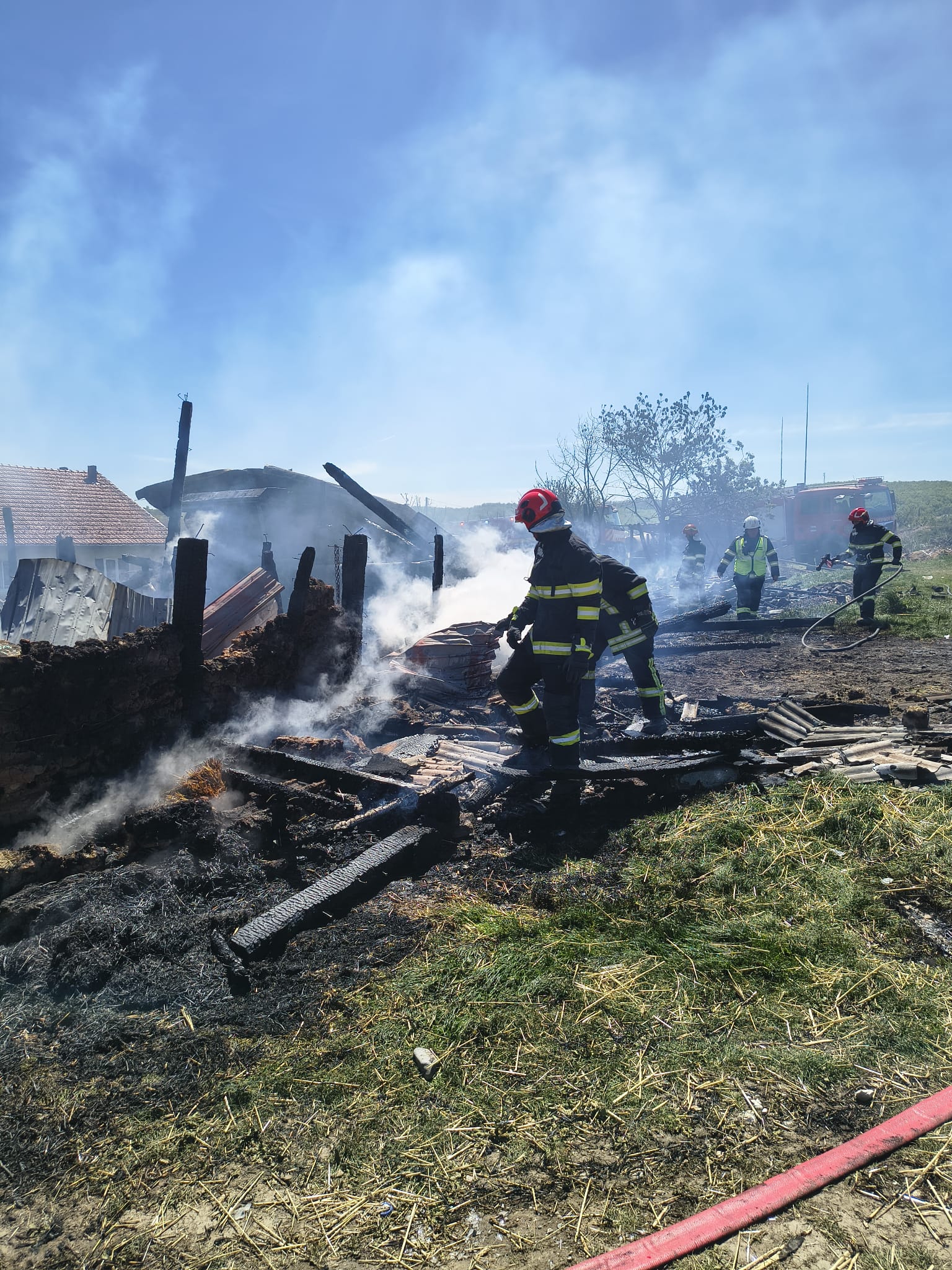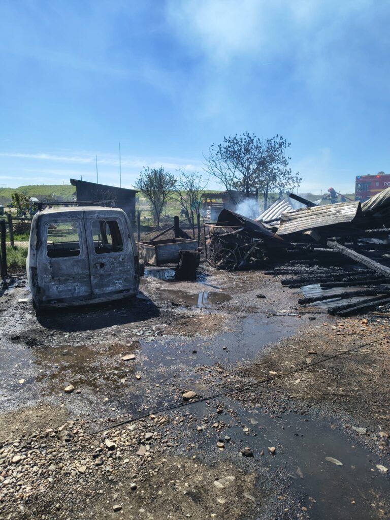 Incendiul a fost localizat în timp operativ, însă flăcările au afectat o suprafață de aproximativ 250 mp. În urma evenimentului au ars o anexă gospodărească, circa 5 m³ de lemn de foc, un autoturism, o semiremorcă, precum și un utilaj agricol.