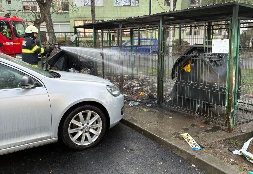 Incendiu la deșeuri: trei tomberoane distruse și o mașină avariată în Satu Mare