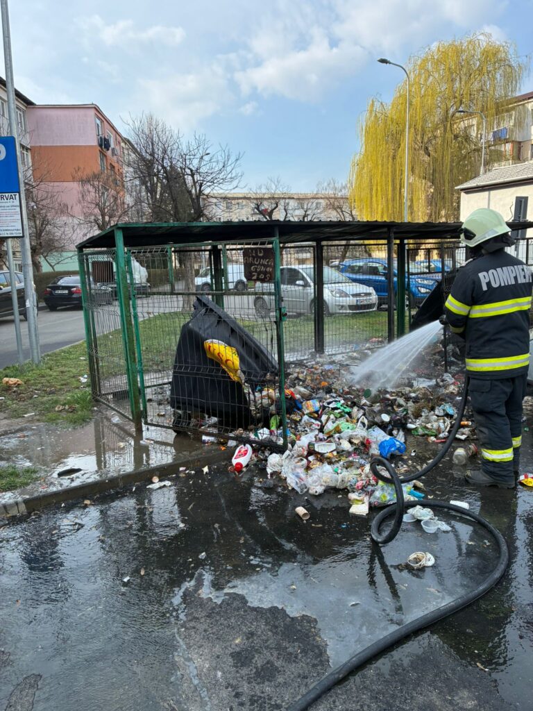 În această dimineață, 17 martie, în jurul orei 09:10, dispeceratul Inspectoratului pentru Situații de Urgență „Someș” a fost sesizat cu privire la izbucnirea unui incendiu la tomberoane de deșeuri menajere, situate în municipiul Satu Mare, cartierul Micro 15, pe strada Prahova.