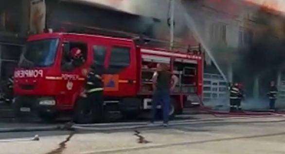 Incendiu la un atelier auto din Decebal: risc de propagare din cauza vântului