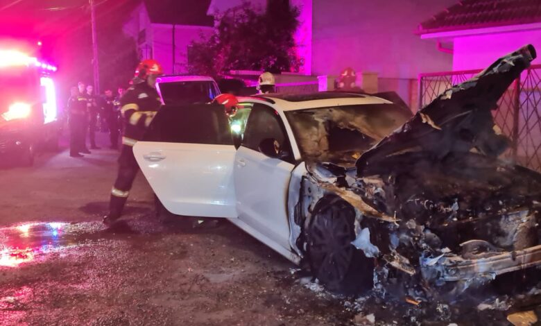 Incendiu la un autoturism în Satu Mare, provocat de un foc pus intenționat!