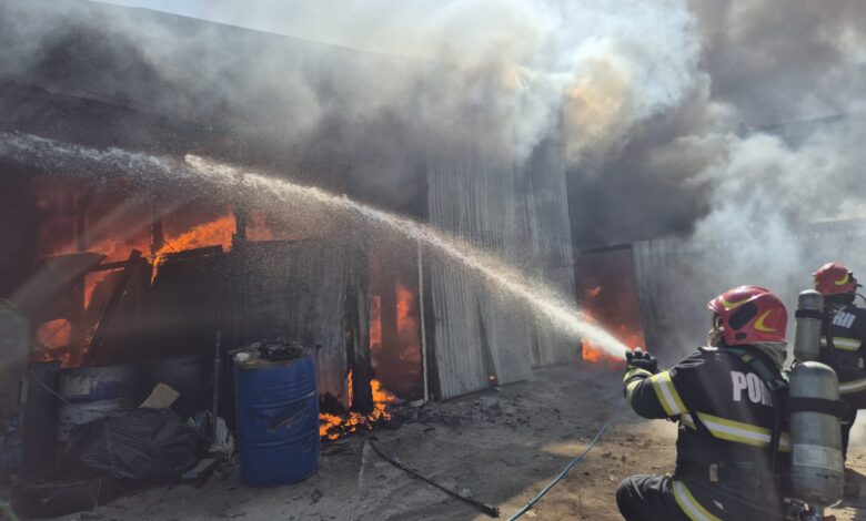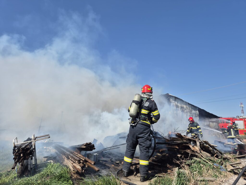 Incendiul izbucnit la un atelier auto din localitatea Decebal a fost lichidat de către pompierii militari