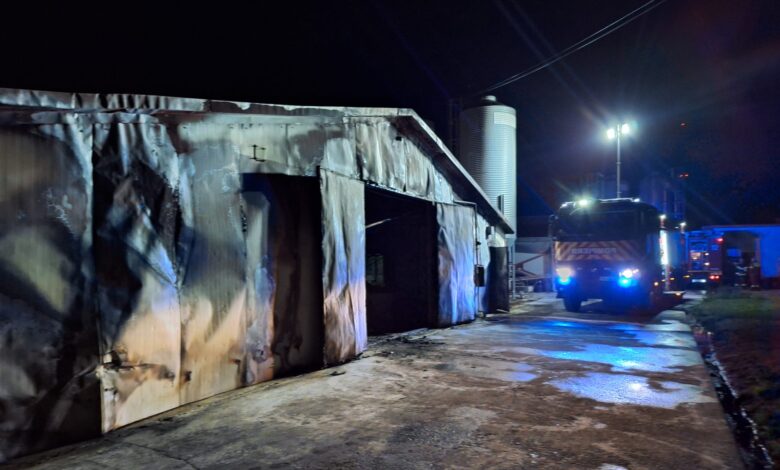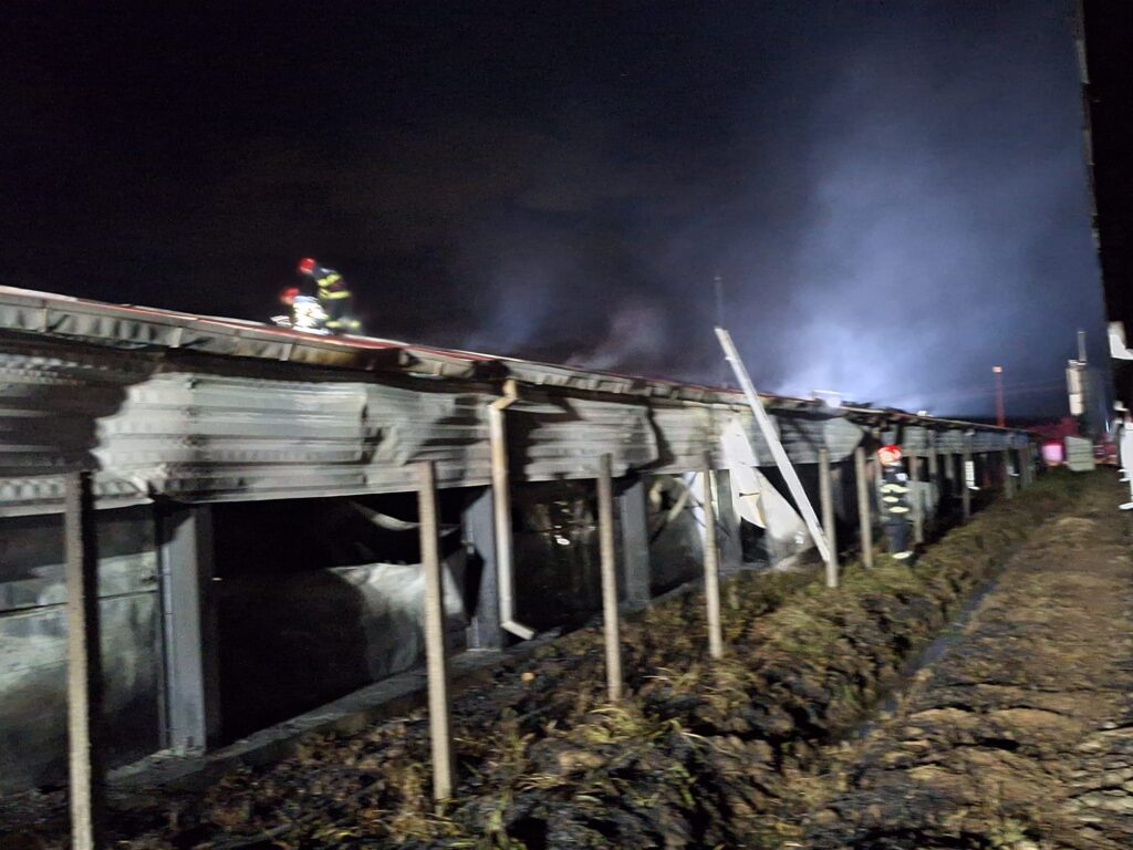 La momentul producerii incendiului, în interiorul halei nu se aflau animale.