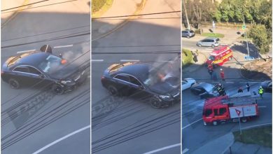 Foto/video: Un autoturism a luat foc în urma unei tamponări din Satu Mare! Șoferul nevinovat avea alcoolemie!