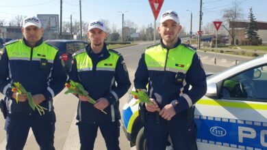 Gest frumos în trafic: polițiștii din Satu Mare au oferit flori doamnelor și domnișoarelor