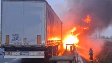 Un autotren a luat foc luni dimineață, pe DN19, în Bihor, la ieșirea din localitatea Valea lui Mihai spre Satu…
