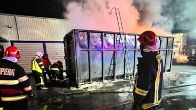 Incendiu puternic la un container cu deșeuri în Parcul Industrial din Satu Mare!