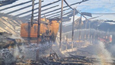 Intervenție complexă a pompierilor sătmăreni la un incendiu izbucnit la o hală de depozitare a cerealelor din localitatea Ghirișa