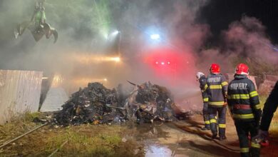 Foto/video: Utilajele unei firme din Satu Mare, la un pas să fie distruse flăcările unui incendiu provocat de persoane iresponsabile!