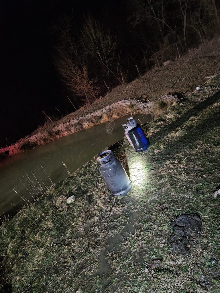 S-a intervenit de urgență la extragerea a două butelii de gaz aflate în interior și la limitarea și lichidarea acestuia înaintea propagării la zona împădurită.