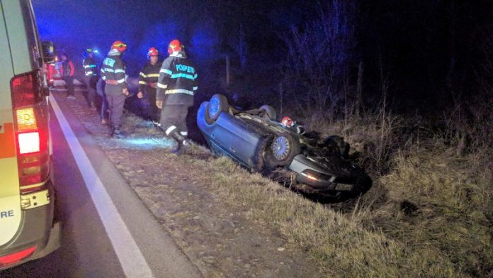 Șofer beat și fără permis de conducere, rănit după ce s-a răsturnat cu mașina pe un drum din județ!