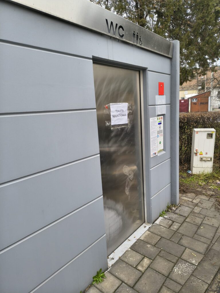 Astăzi însă, una dintre aceste toalete afișează un mesaj simplu și frustrant pentru cetățeni: „Nefuncțională”.