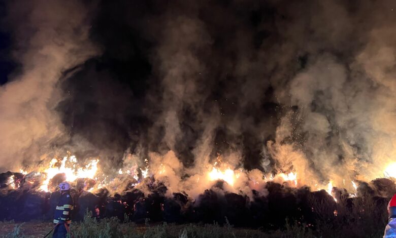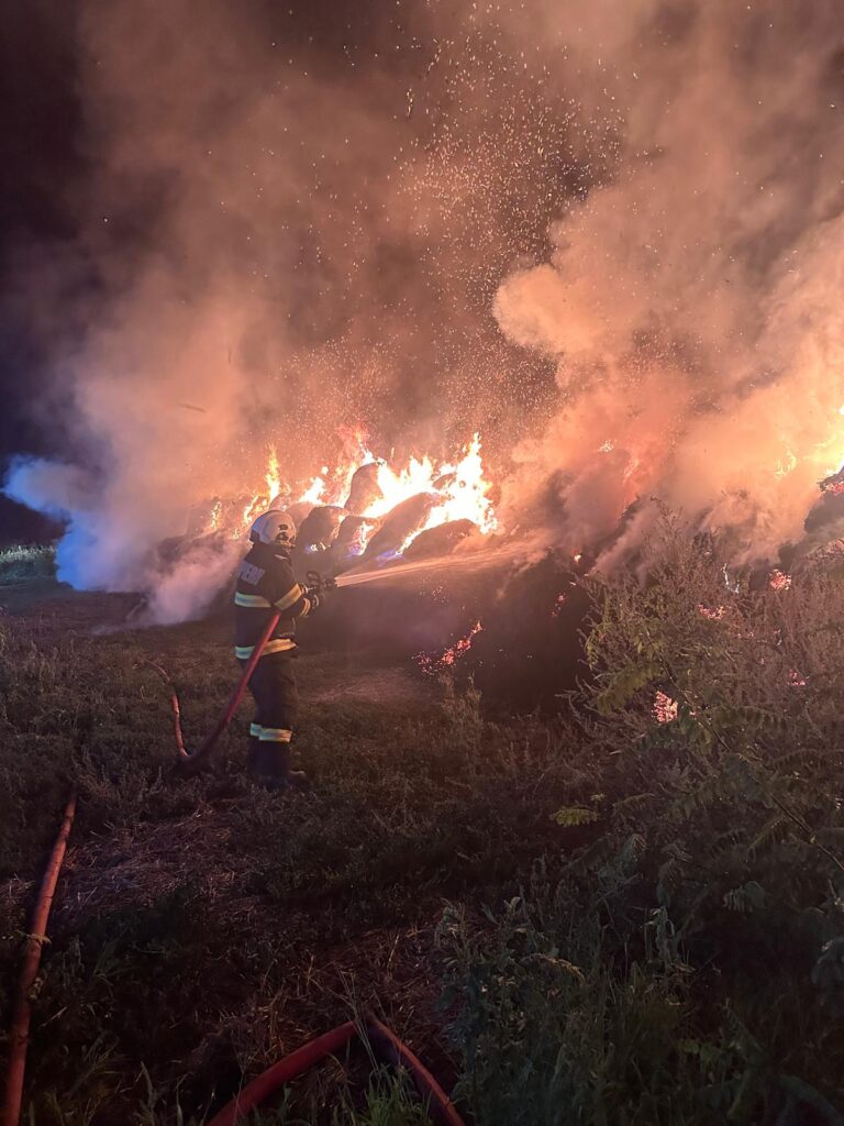 În urma incendiului, au ars aproximativ 82 de rotobaloți de paie și fân, iar alți circa 40 au fost afectați de căldura degajată.