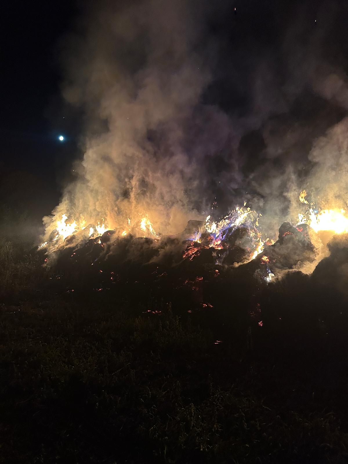 În urma incendiului, au ars aproximativ 82 de rotobaloți de paie și fân, iar alți circa 40 au fost afectați de căldura degajată.