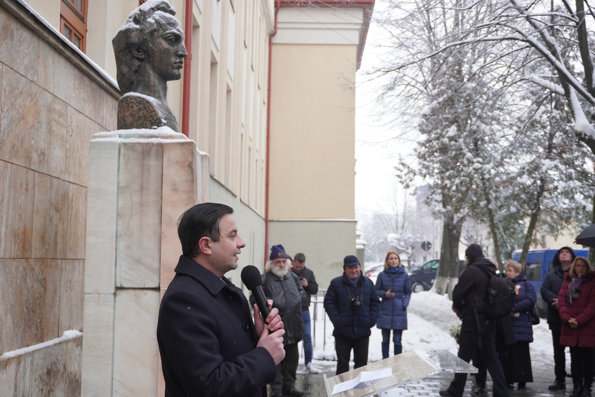 Evocarea celor 176 de ani de la nașterea poetului național Mihai Eminescu, un emoționant moment artistic precum și depuneri de jerbe de flori au avut loc la bustul ”poetului nepereche” amplasat în fața Colegiului Național ”Mihai Eminescu” Satu Mare.