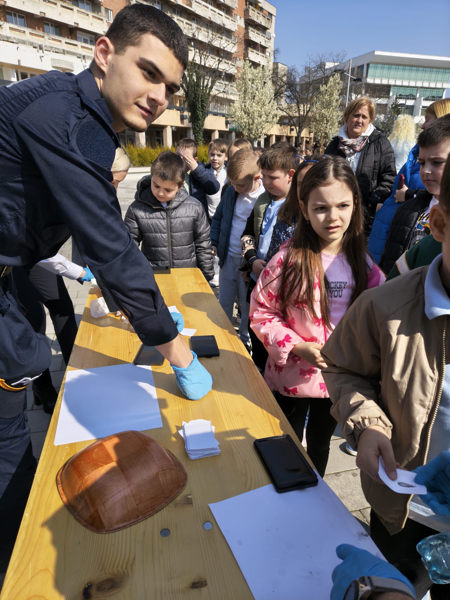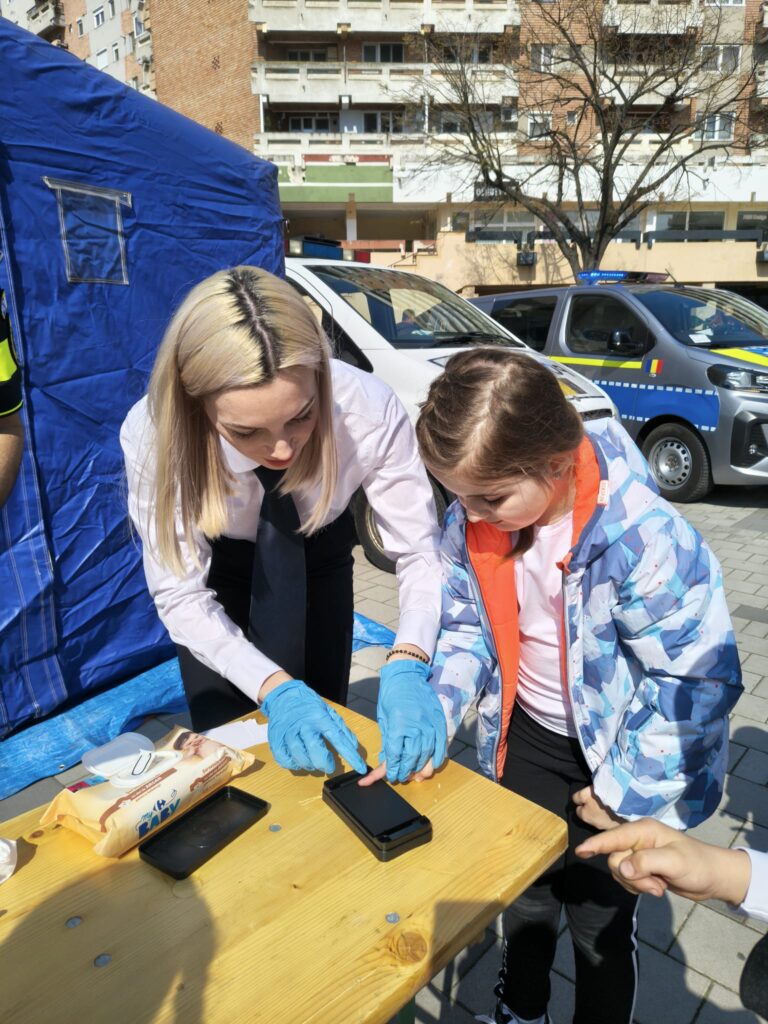 Un punct de interes major a fost Laboratorul Mobil de Criminalistică, unde curioșii au descoperit tehnologiile utilizate în investigarea infracțiunilor, direct de la specialiști, iar copii au plecat cu amprenta acasă.