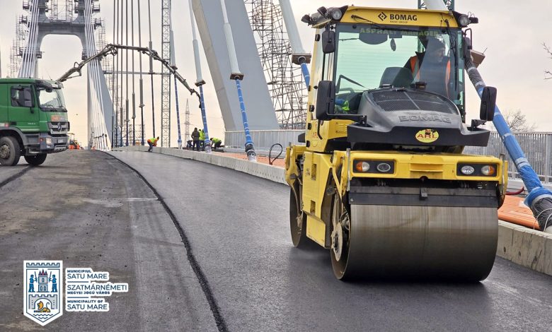 Construcția noului pod peste Someș se apropie de finalizare. Zilele acestea se execută lucrări de asfaltare a carosabilului și montare a stâlpilor de iluminat.