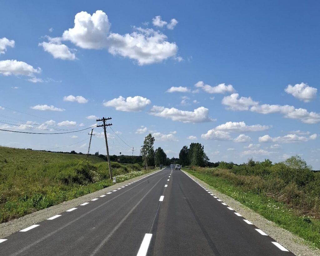 Au fost finalizate lucrările de asfaltare, s-au aplicat marcajele rutiere și au fost montate indicatoarele de circulație, iar drumul modernizat, cu o lățime de 6,5 metri, este complet funcțional.
