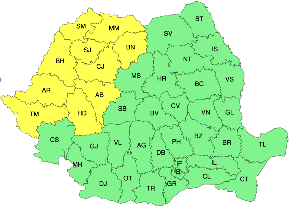 Avertizarea este valabilă astăzi, 6 septembrie 2025, între 12.00 și 21.00