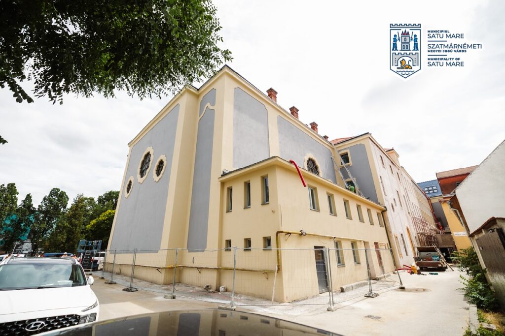Primăria Satu Mare anunță că lucrările de reabilitare a fațadei Filarmonicii de Stat Dinu Lipatti se apropie de final.