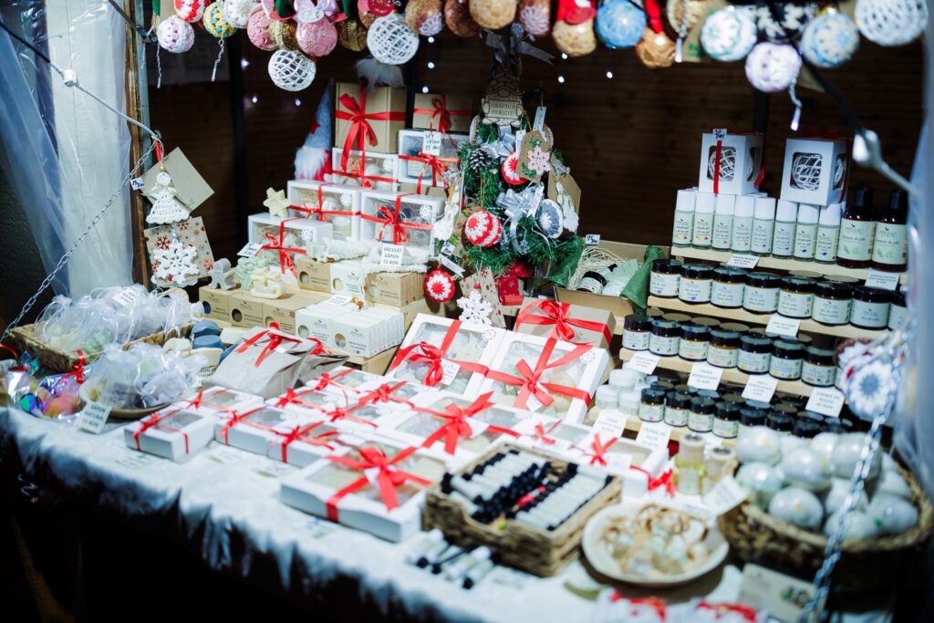Târgul va găzdui 30 de căsuțe dedicate meșterilor populari și producătorilor locali, care vor oferi o selecție variată de creații autentice: bijuterii lucrate manual, obiecte din lemn, ceramică, țesături și decorațiuni de Crăciun.