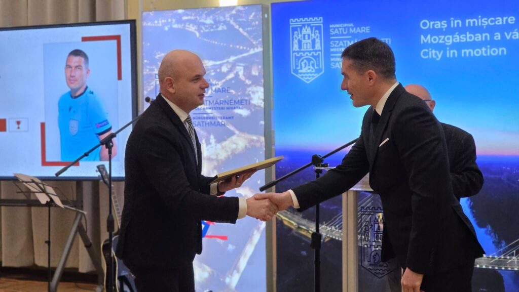 Prezent la eveniment, prefectul Altfatter Tamás a acordat marelui arbitru Kovács István și o Distincție de Onoare, în numele Instituției Prefectului Județul Satu Mare.