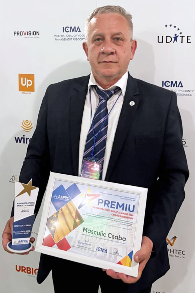 În cadrul Galei Administratorilor Publici din România, premiul ,,Administratorul public al anului 2024’’ la Categoria Municipii a fost acordat administratorului public al municipiului Satu Mare, Masculic Csaba.