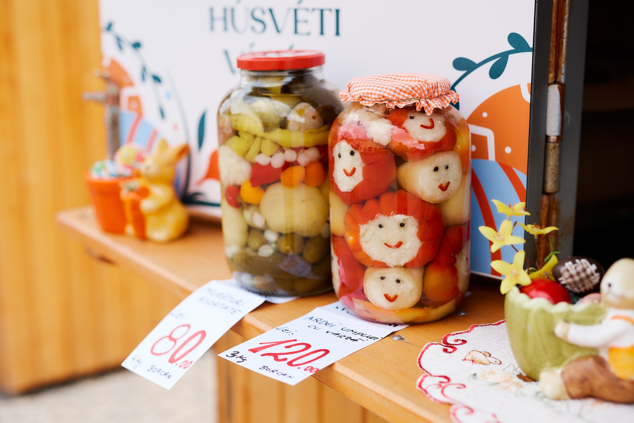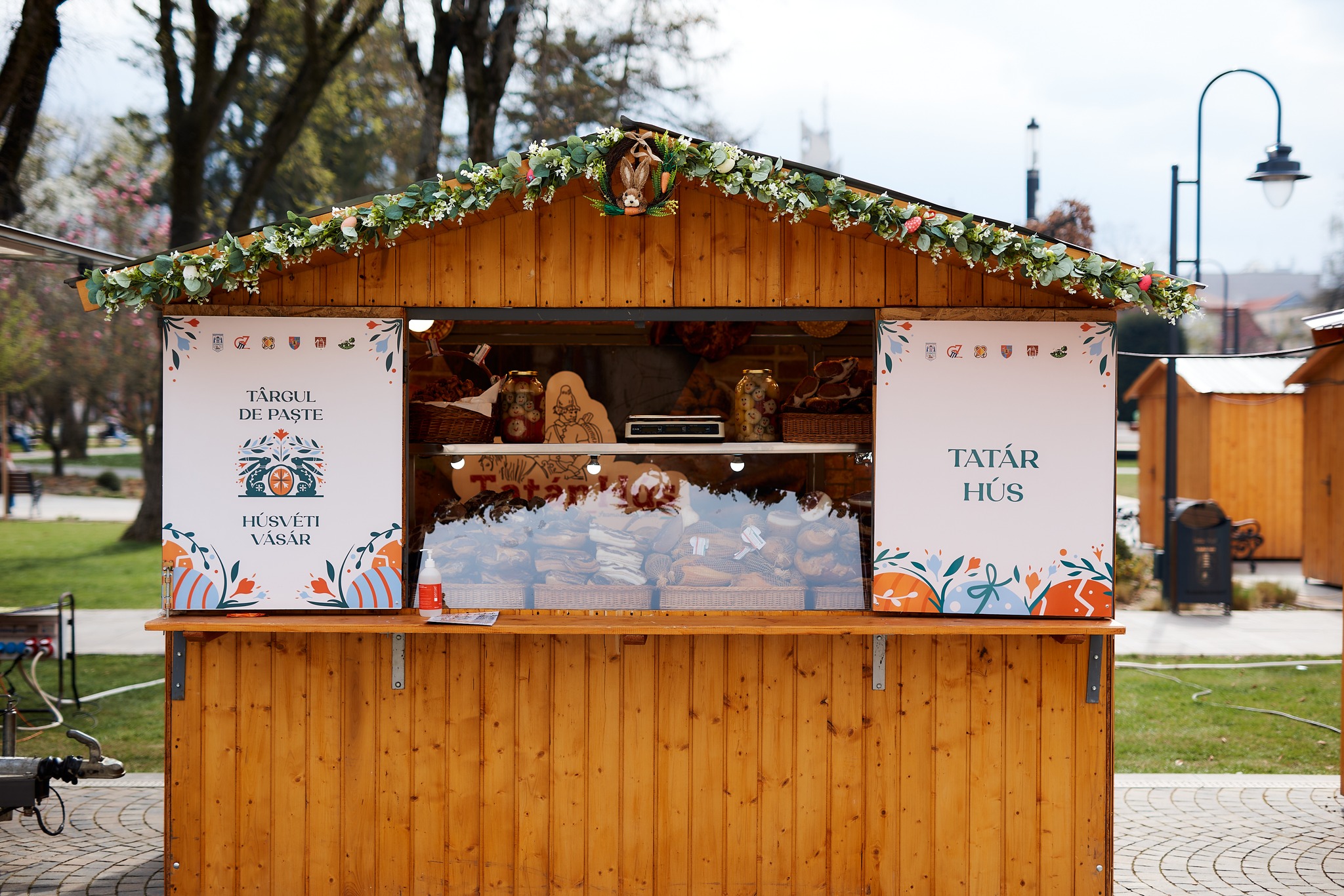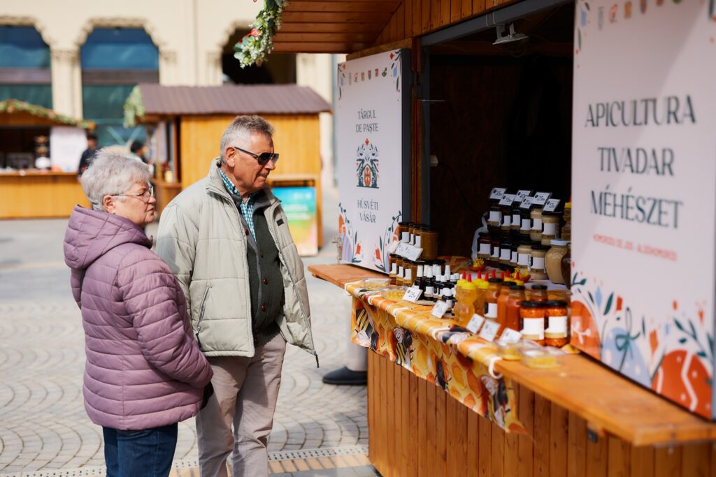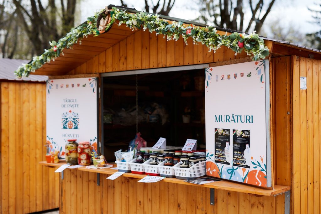 La cele 24 de căsuțe amenajate special, meșterii populari și producătorii locali îi așteaptă pe vizitatori cu o ofertă variată de produse specifice sărbătorilor pascale: cadouri unicat, decorațiuni realizate manual, dar și preparate tradiționale și dulciuri pentru toate gusturile.
