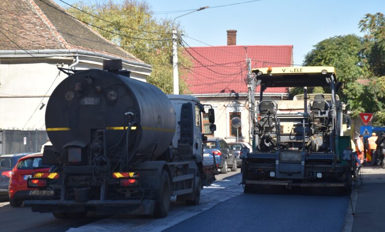 Trafic îngreunat în zona Pieței Mari din Satu Mare! Ultimele zile de disconfort, a început asfaltarea străzii Martirilor Deportați